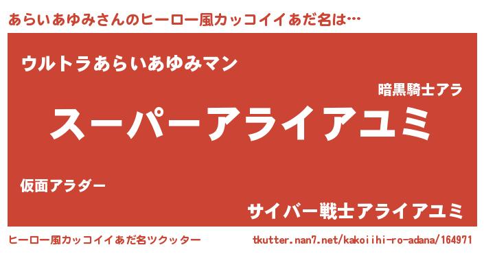 | 欧米人風あだ名 | 『あらいあゆみ・ステッグマイヤー』 |