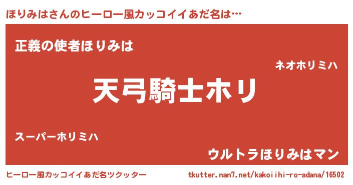 | 男性向けラノベタイトル風あだ名 | 『ほりみはの嫁は女の子じゃないと思った?』 |