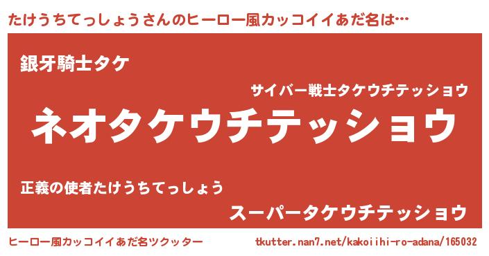 | 男性向けラノベタイトル風あだ名 | 『タケウチテッショウスレイヤー』 |