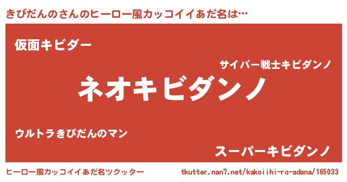 | 男性向けラノベタイトル風あだ名 | 『きびだんのという概念が存在しない退屈な世界 』 |