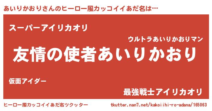 | 男性向けラノベタイトル風あだ名 | 『おまえをオタクにしてやるから、俺をあいりかおりにしてくれ! 』 |