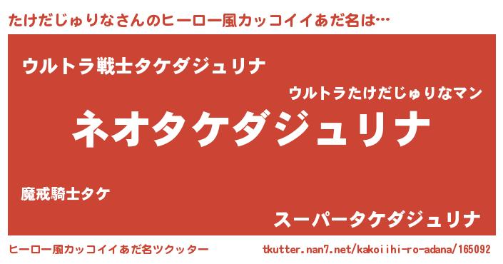 | ヘコむあだ名 | 『たけだじゅりな(笑)』『たけにー』 |