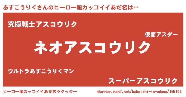 | 意味不明あだ名 | 『永久保存あすこうりく』 |