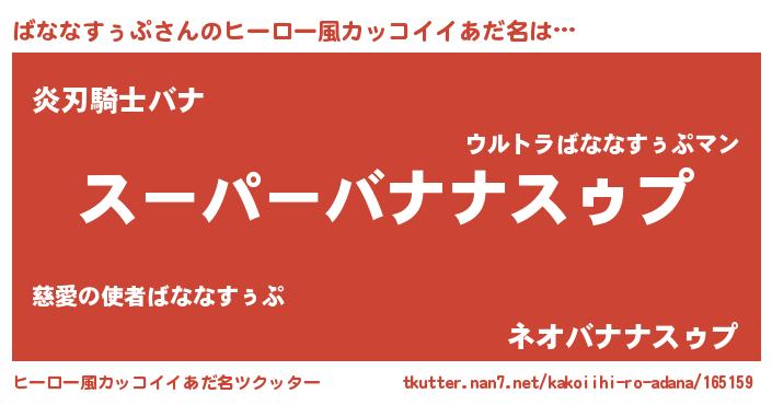| 男性向けラノベタイトル風あだ名 | 『ばななすぅぷに滅ぼされるだけの簡単なお仕事です』 |