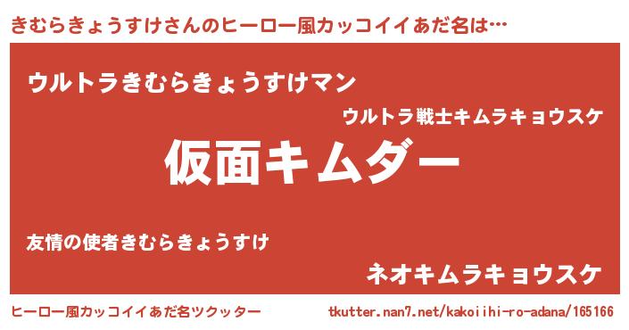 女子向けラノベタイトル風あだ名 | 『乙女ゲームの破滅フラグしかない悪役きむらきょうすけに転生してしまった…』 |