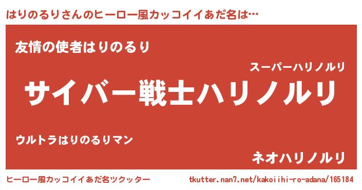 | 男性向けラノベタイトル風あだ名 | 『Re:はりのるりから始める異世界生活』 |