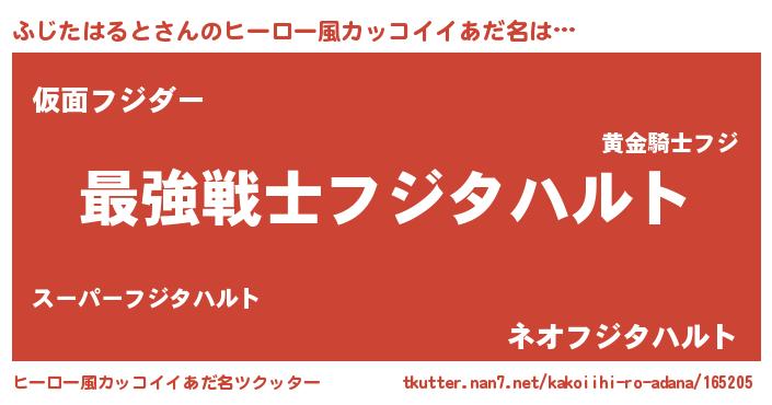 | ヘコむあだ名 | 『ふじたはると(苦笑)』『ふじぷりん』 |