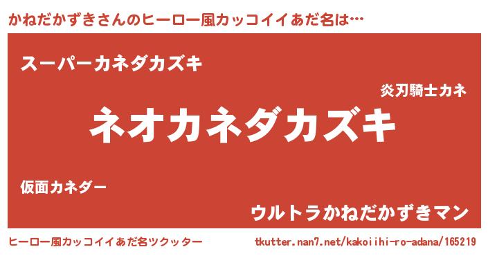 | 胡散臭い通販商品みたいなあだ名 | 『来世でも幸せになれる健康食品…その名も「かねだかずき」』 |