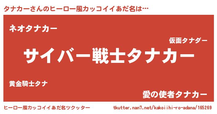 | 女子向けラノベタイトル風あだ名 | 『闇のタナカー』『死神タナカーの再婚』 |