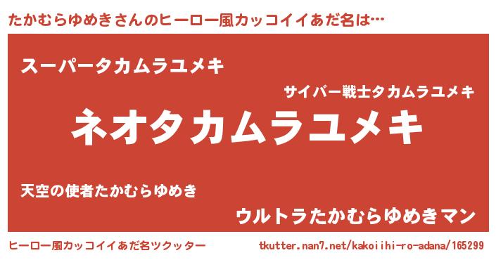 | 男性向けラノベタイトル風あだ名 | 『たかむらゆめきに滅ぼされるだけの簡単なお仕事です』 |