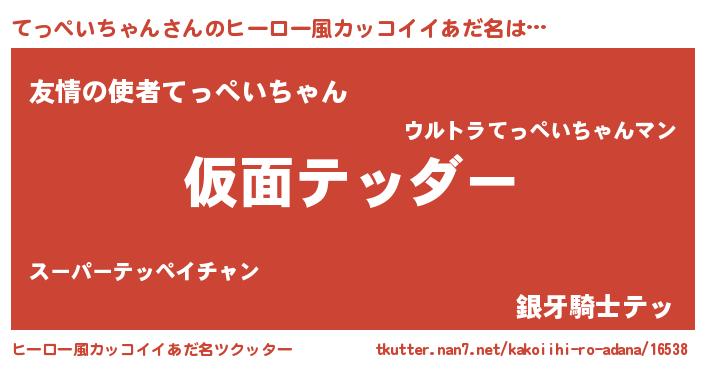 | 意味不明あだ名 | 『住所不定無職てっぺいちゃん(93歳)』 |