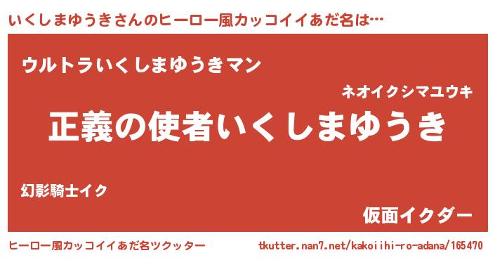 | 男性向けラノベタイトル風あだ名 | 『緋弾のイクシマユウキ』 |