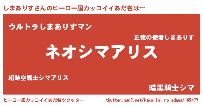 | 男性向けラノベタイトル風あだ名 | 『しまありすという概念が存在しない退屈な世界 』 |