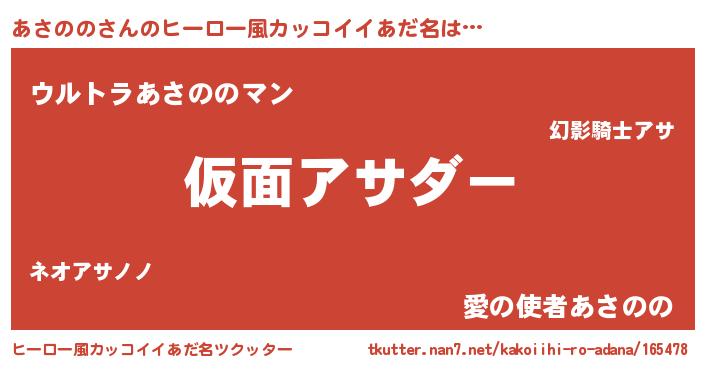 | 男性向けラノベタイトル風あだ名 | 『この素晴らしい世界にあさののを!』 |