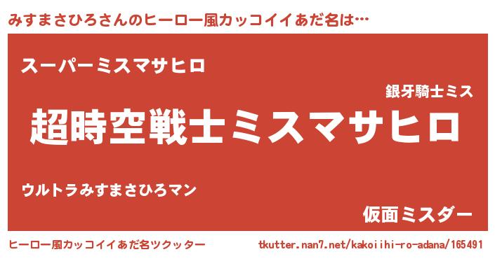 | 女子向けラノベタイトル風あだ名 | 『みすまさひろなんてお断りですっ。』 |