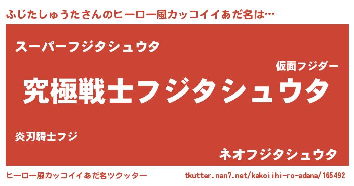 | 男性向けラノベタイトル風あだ名 | 『Re:ふじたしゅうたから始める異世界生活』 |