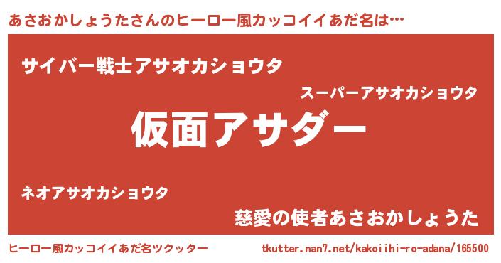 | ヘコむあだ名 | 『あさにゅー』『あさおかしょうた(笑)』 |