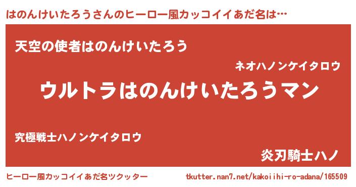 | 男性向けラノベタイトル風あだ名 | 『やはりはのんけいたろうの青春ラブコメはまちがっている 』 |