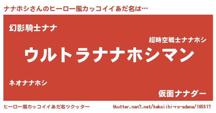 | ファンタジー風あだ名 | 『エターナルナナホシー』『ゼナナトゥ』 |