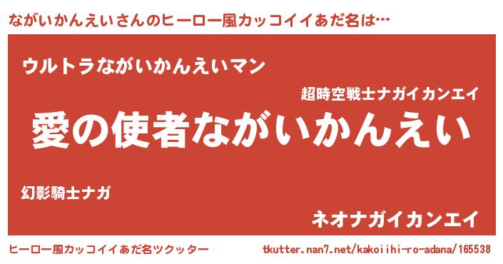 | 男性向けラノベタイトル風あだ名 | 『転生したらながいかんえいだった件』 |