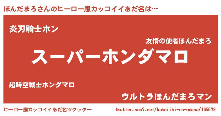 | 男性向けラノベタイトル風あだ名 | 『転生したらほんだまろだった件』 |