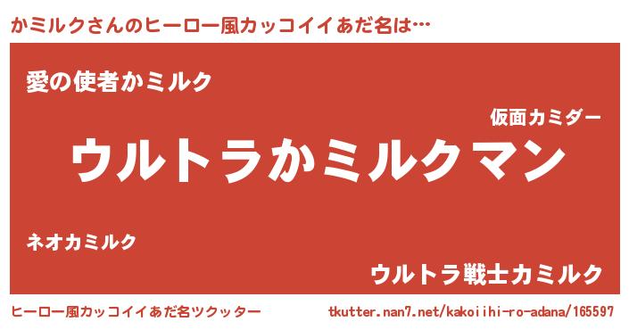| 女子向けラノベタイトル風あだ名 | 『かミルク伯爵の花嫁』『かミルク恋絵巻』 |