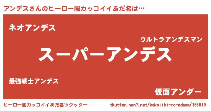 アンデスさんのヒーロー風カッコイイあだ名をツクッター!