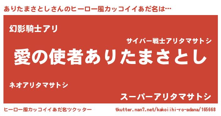 | 男性向けラノベタイトル風あだ名 | 『ノーゲーム・ノーアリタマサトシ』 |
