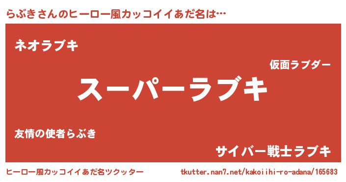 | 男性向けラノベタイトル風あだ名 | 『うちのらぶきが世界を掌握している!』 |