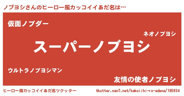 ノブヨシさんのヒーロー風カッコイイあだ名をツクッター!