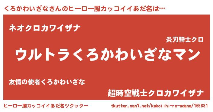 | 意味不明あだ名 | 『くろかわいざなフォーエバー』 |