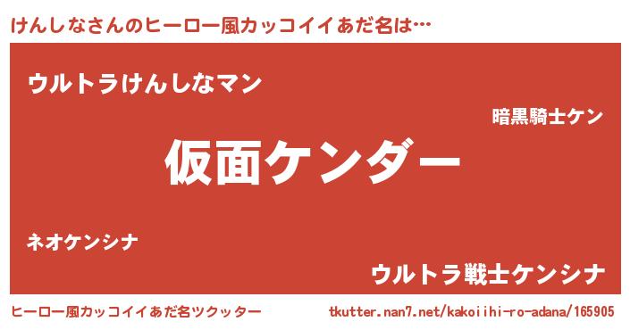 | 意味不明あだ名 | 『住所不定無職けんしな(12歳)』 |