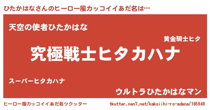 | 男性向けラノベタイトル風あだ名 | 『ひたかはなに滅ぼされるだけの簡単なお仕事です』 |