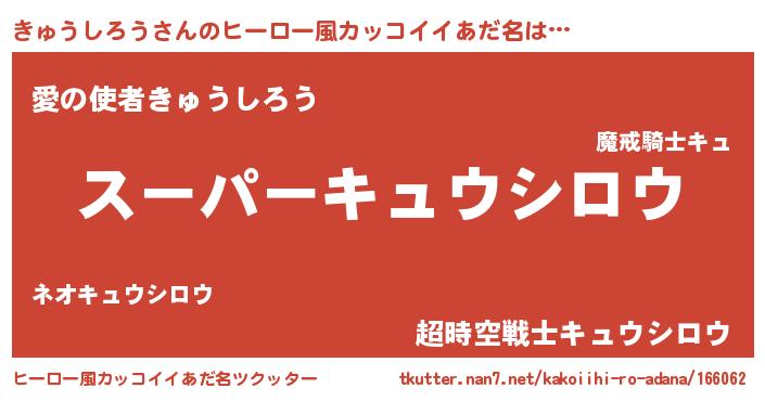 | 男性向けラノベタイトル風あだ名 | 『キュウシロウアートオンライン』 |