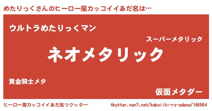 | 男性向けラノベタイトル風あだ名 | 『めたりっくという概念が存在しない退屈な世界 』 |