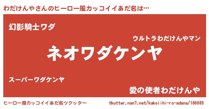 | ヘコむあだ名 | 『わだけんや(笑)』『わだお』 |