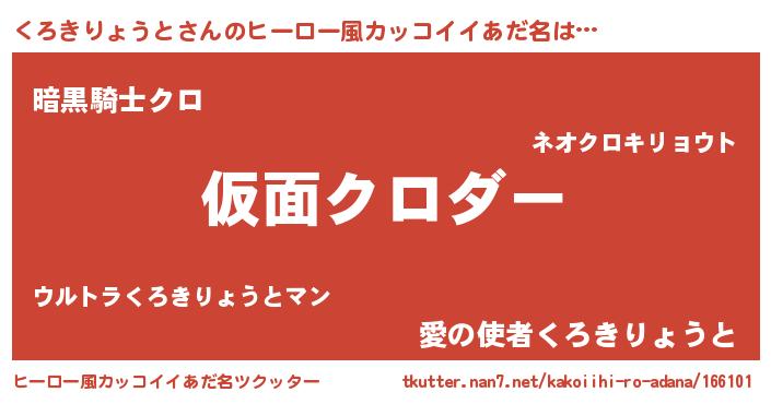 | 胡散臭い通販商品みたいなあだ名 | 『あなたにだけ特別に提供する世界で10本だけ現存している希少なブランデー…その名も「くろきりょうと」』 |