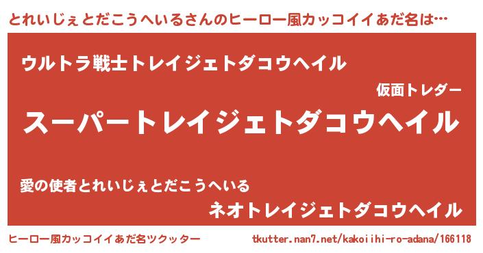 | 胡散臭い通販商品みたいなあだ名 | 『必ず成功する霊験あらたかなお札…その名も「とれいじぇとだこうへいる」』 |
