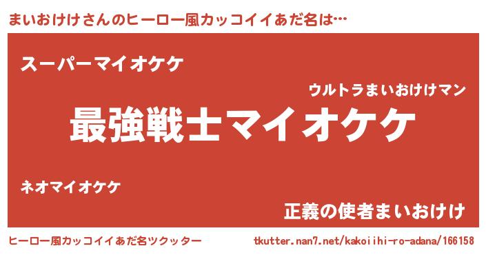 | 男性向けラノベタイトル風あだ名 | 『Re:まいおけけから始める異世界生活』 |