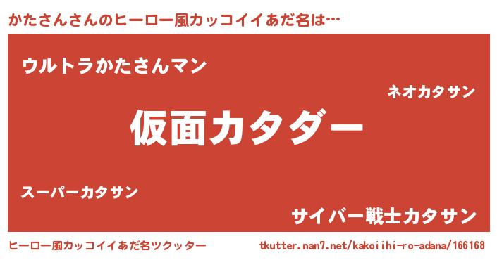 | 男性向けラノベタイトル風あだ名 | 『この素晴らしい世界にかたさんを!』 |