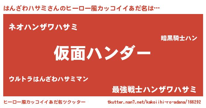| 男性向けラノベタイトル風あだ名 | 『この素晴らしい世界にはんざわハサミを!』 |
