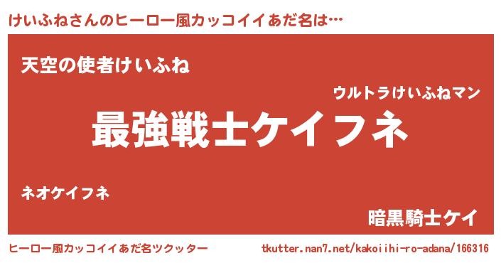 | 意味不明あだ名 | 『自称けいふね』『けいふねフォーエバー』 |
