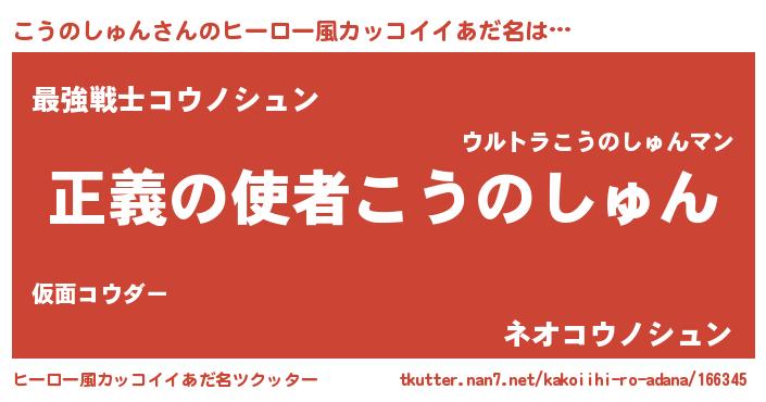 | 男性向けラノベタイトル風あだ名 | 『おまえをオタクにしてやるから、俺をこうのしゅんにしてくれ! 』 |