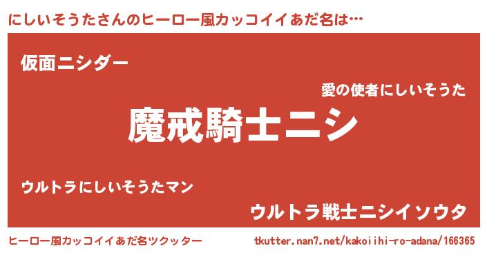 | 男性向けラノベタイトル風あだ名 | 『ダンジョンににしいそうたを求めるのは間違っているだろうか』 |