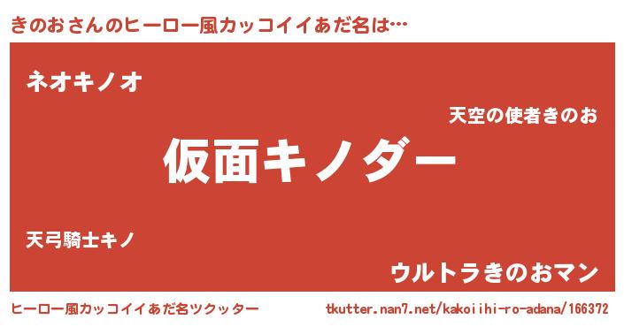 | 男性向けラノベタイトル風あだ名 | 『キノオスレイヤー』『魔弾の王ときのお』 |