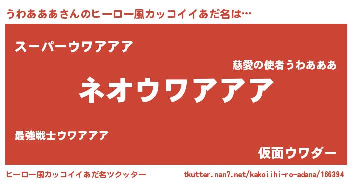 | 意味不明あだ名 | 『永久保存うわあああ』『自称うわあああ』 |