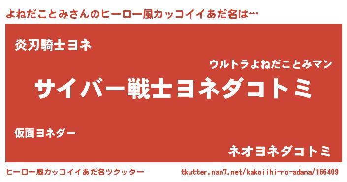 | 意味不明あだ名 | 『自称よねだことみ』 |