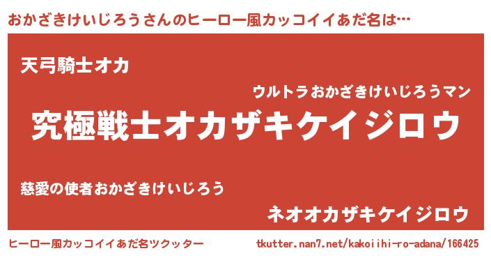 | 男性向けラノベタイトル風あだ名 | 『Re:おかざきけいじろうから始める異世界生活』 |