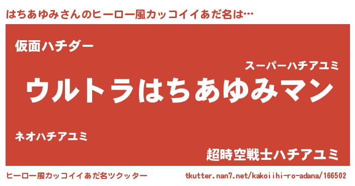 | 意味不明あだ名 | 『はちあゆみフォーエバー』 |