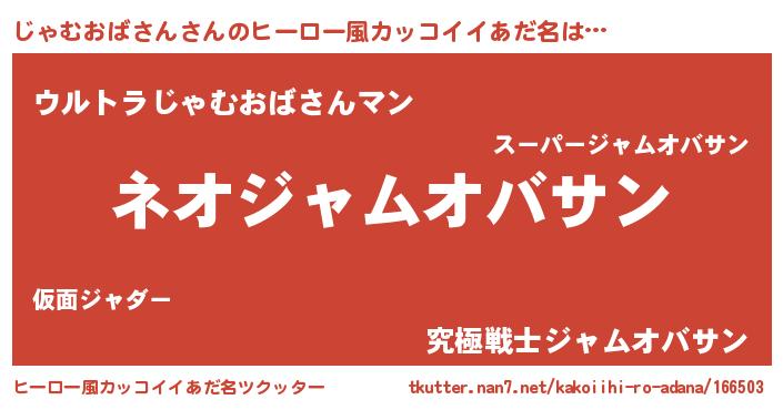 | 伝説のあだ名 | 『古文書に記された勇者じゃむおばさん』 |